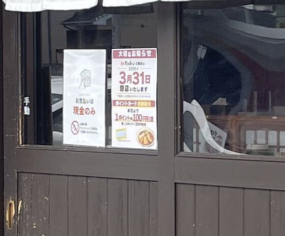 ラーメン 「大切なお知らせ 3月31日閉店いたします」!貼り紙がしてありました!