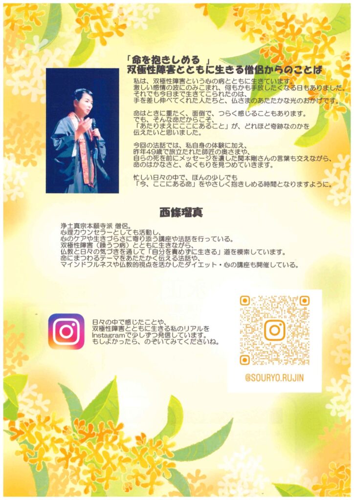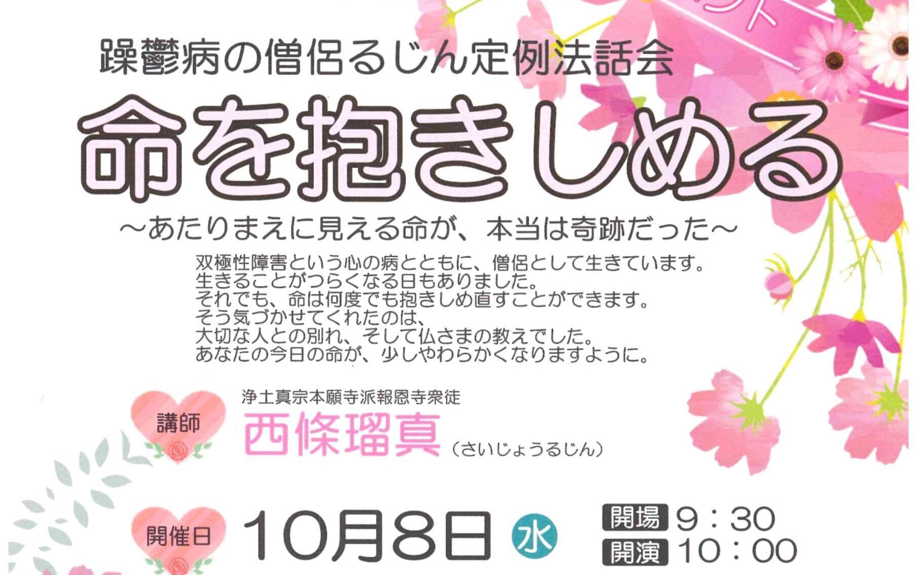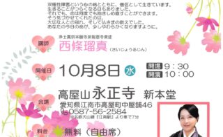 西條瑠真さん法話会が、10/8(水)に開催されます。