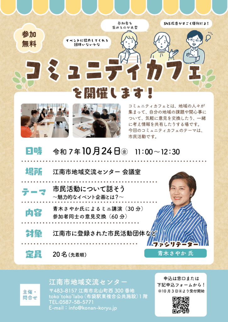 コミュニティカフェ開催のお知らせ | 江南市地域交流センター