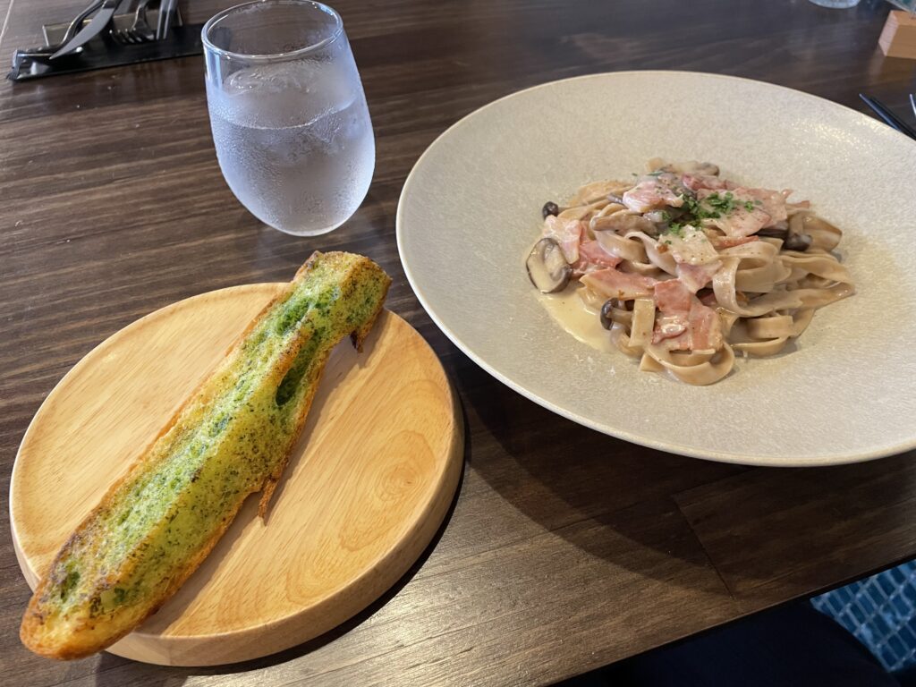 きのことベーコンのクリームソース イタリア産栗のタリアテッレ と トースト