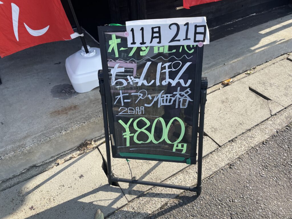 オープン記念(2日間)ちゃんぽん800円!