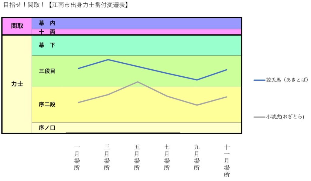 6回(1年分)、江南市出身力士の番付推移がグラフで見られます!
