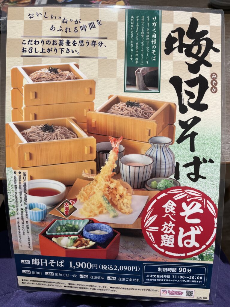 制限時間90分!追加汁、追加そば一段、追加薬味、追加ごまだれが何度でも追加料金なし!