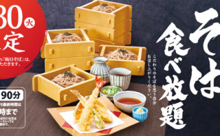 12/31(水)の『晦日そば』は休止いたします。 12/30(火)の『そば食べ放題』をご利用ください。 メニュ …