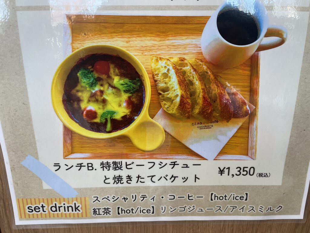 特製ビーフシチューと焼きたてバケットのランチを選択!