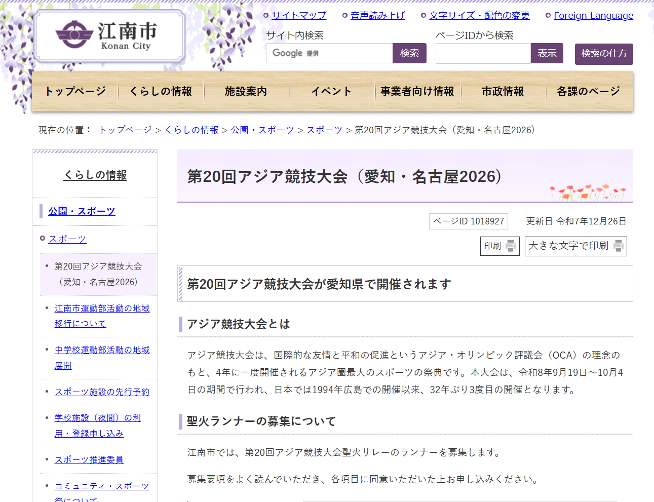第20回アジア競技大会(愛知・名古屋2026) 江南市ホームページ