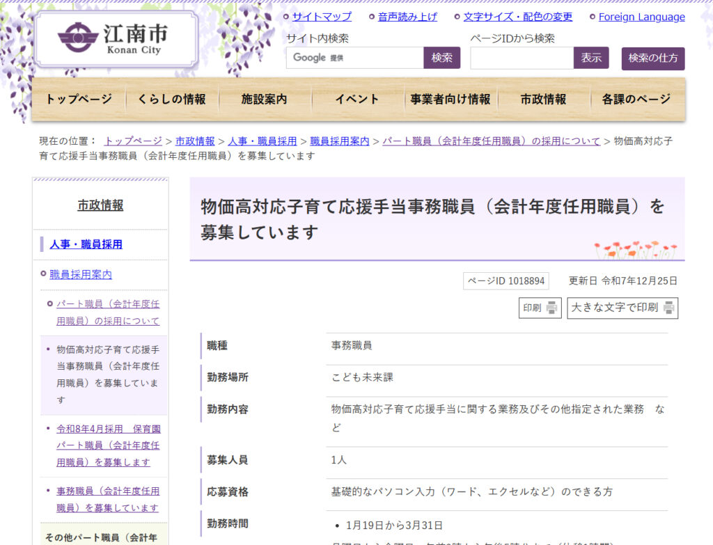 募集詳細は↓画像をクリック(江南市ホームページ)