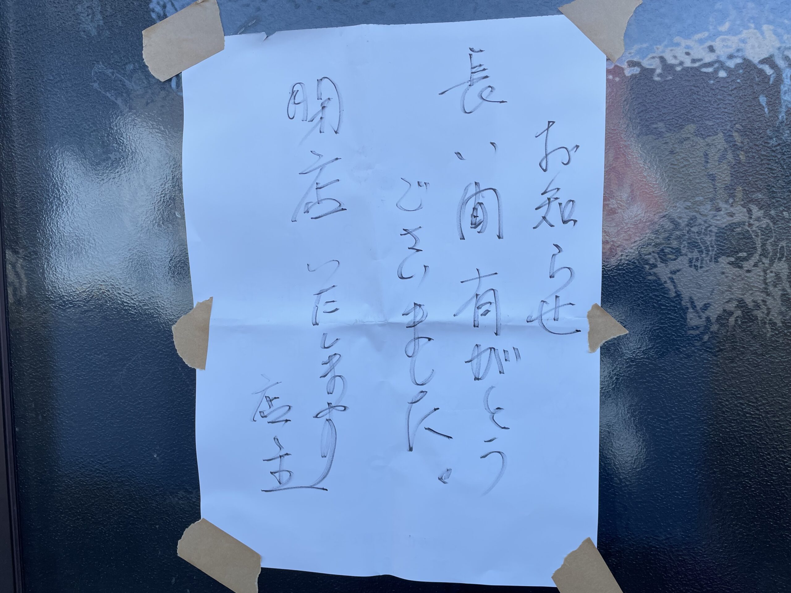 開店・閉店「長い間有がとうございました。閉店いたします 店主」