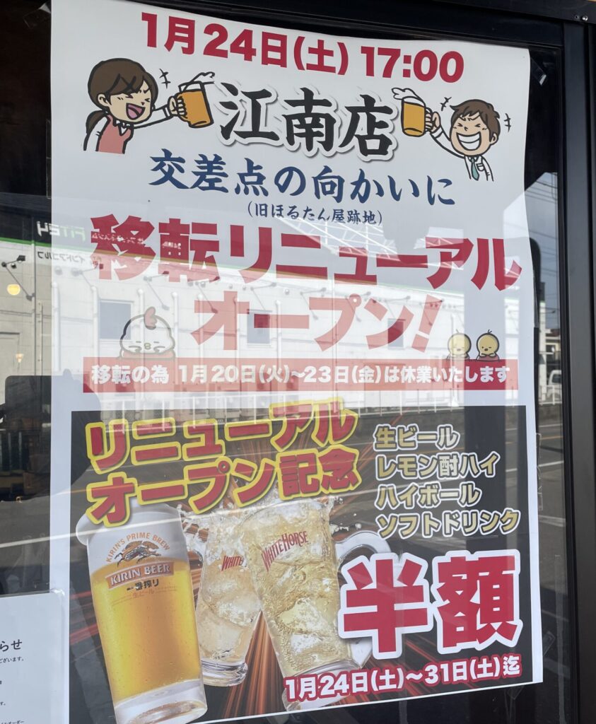 ・【移転リニューアル】元祖やきとり家「美濃路 江南店」が交差点の向かい側へお引越し!新店舗にて「ドリンク半額フェア」&衝撃の「ボトル1本プレゼント」キャンペーン開催決定(PR TIMES)