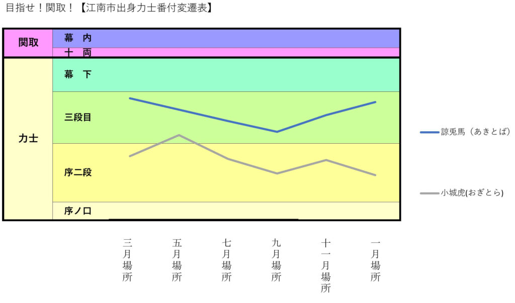 6回(1年分)、江南市出身力士の番付推移がグラフで見られます!