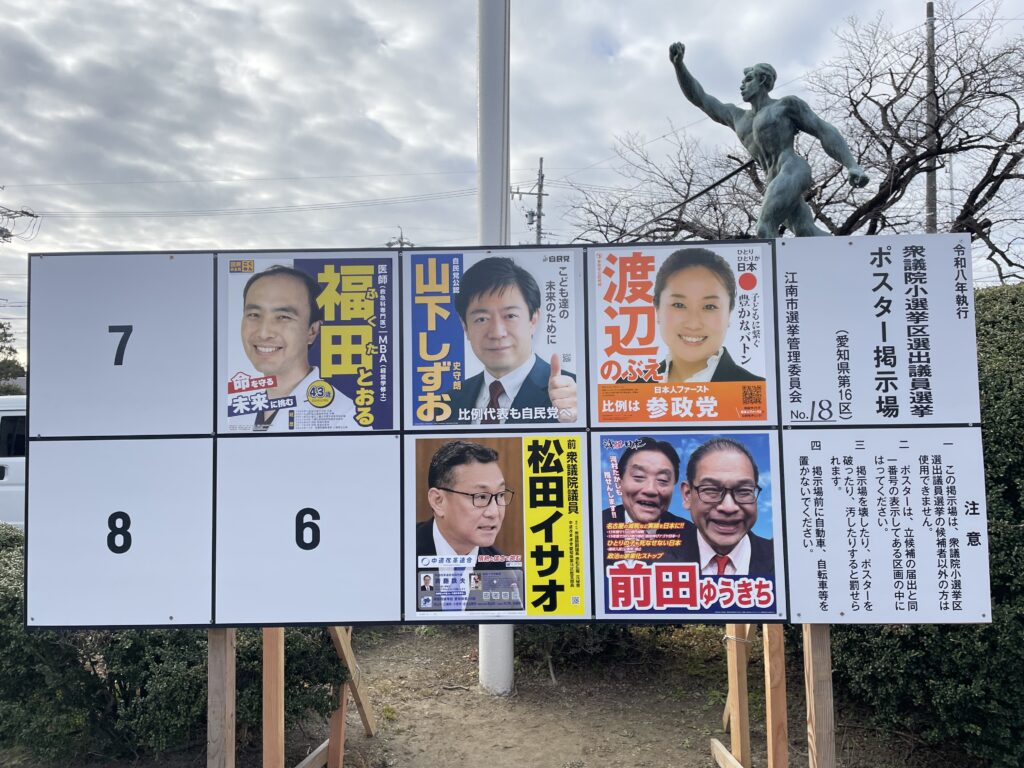 衆議院選挙!江南市が含まれる愛知県第16区の立候補者は5人!小選挙区制での当選は1人のみ!江南市民はこの【愛知県第16区】と【比例代表 東海ブロック】の2つに投票することになります!2/8(日)投票!