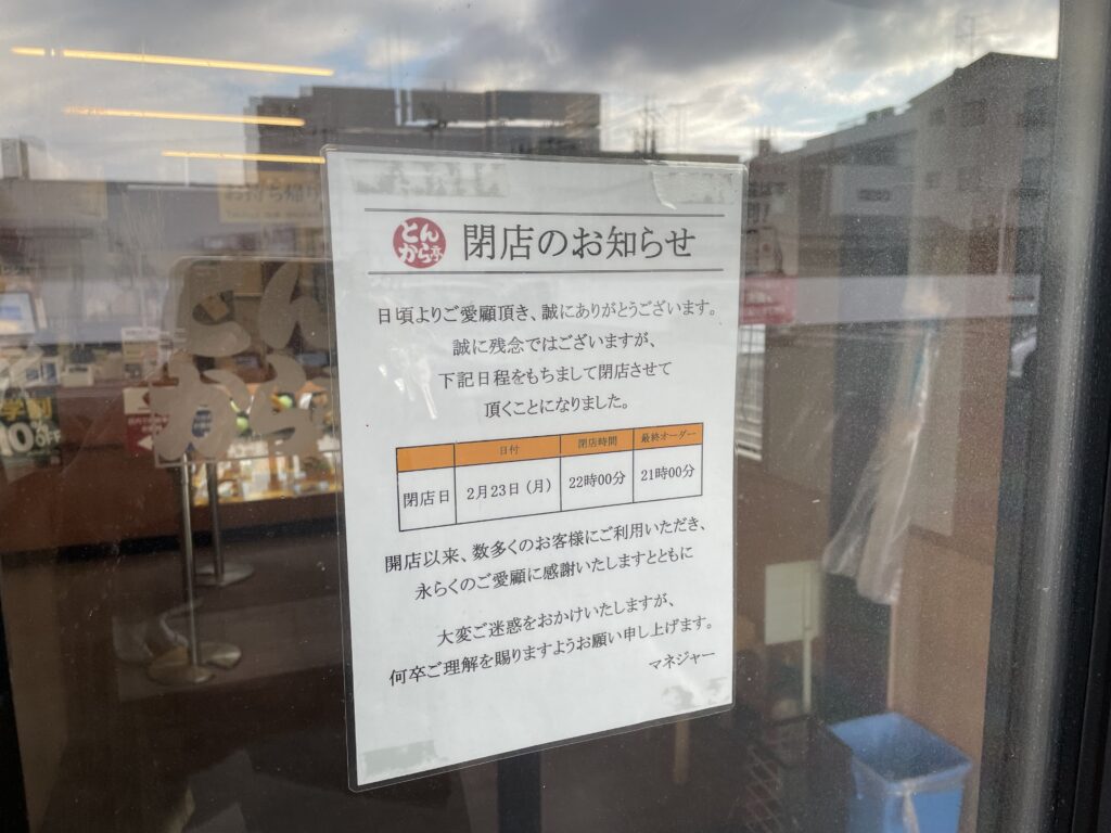 とんから亭が、2/23(月)で閉店とのことみたいです。