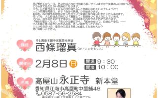 西條瑠真さん「人生円満生活」2/8(日)10時 永正寺『定期法話会』毎月8日開催