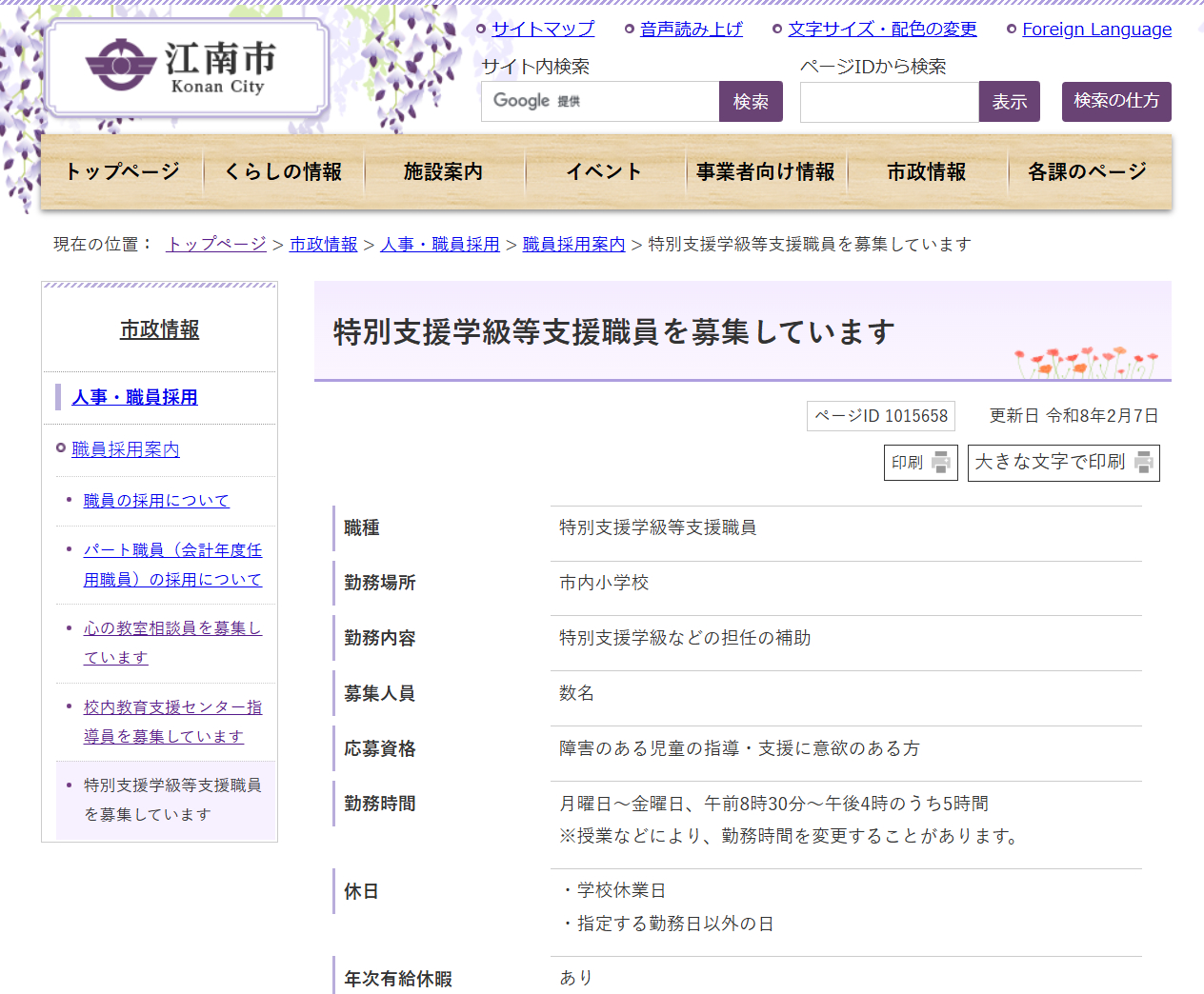 特別支援学級等支援職員、農業委員会委員及び農地利用最適化推進員、「放課後子ども教室」学習アドバイザー、心の教室相談員、校内教育支援センター指導をを募集しているみたい。