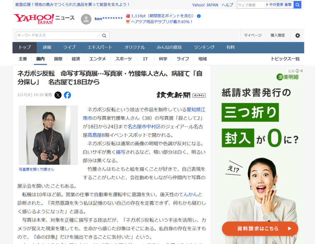 ネガポジ反転 命写す写真展…写真家・竹腰隼人さん、病経て「自分探し」 名古屋で18日から