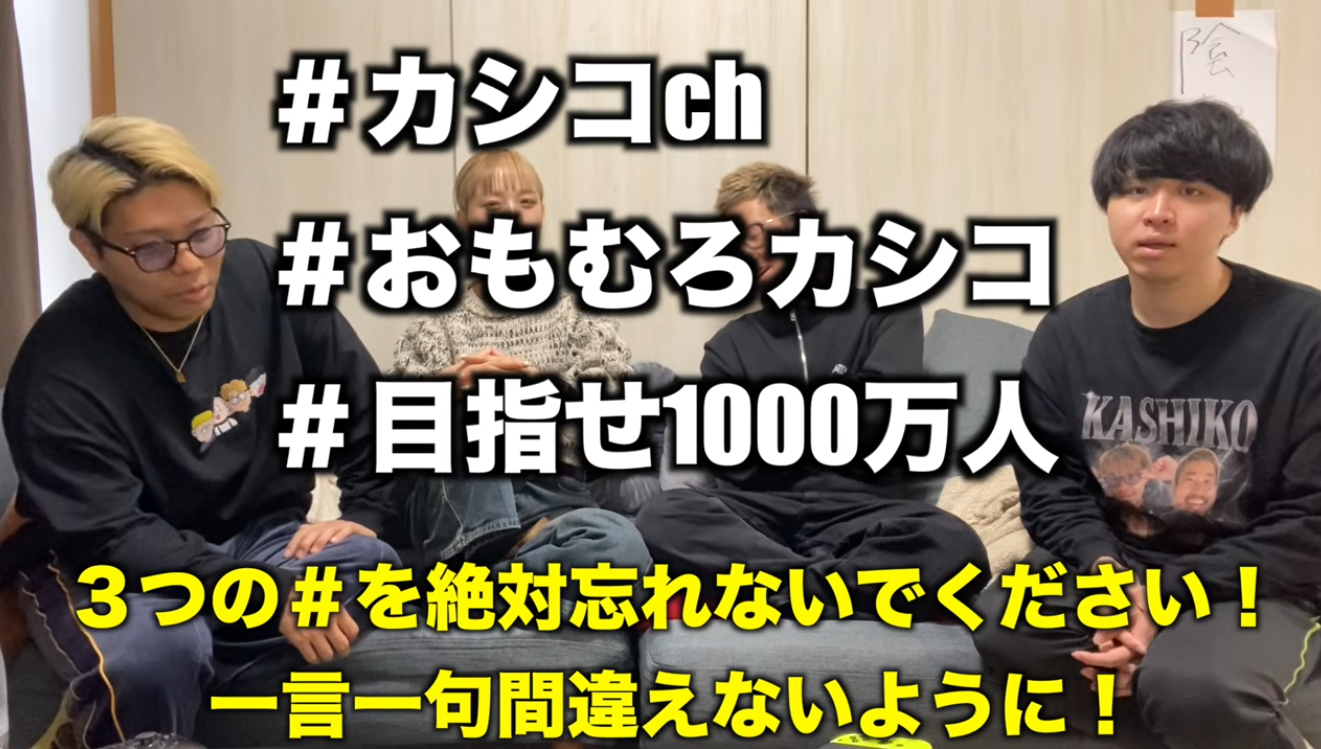 #カシコch #おもむろカシコ #目指せ1000万人 のハッシュタグをつけて、