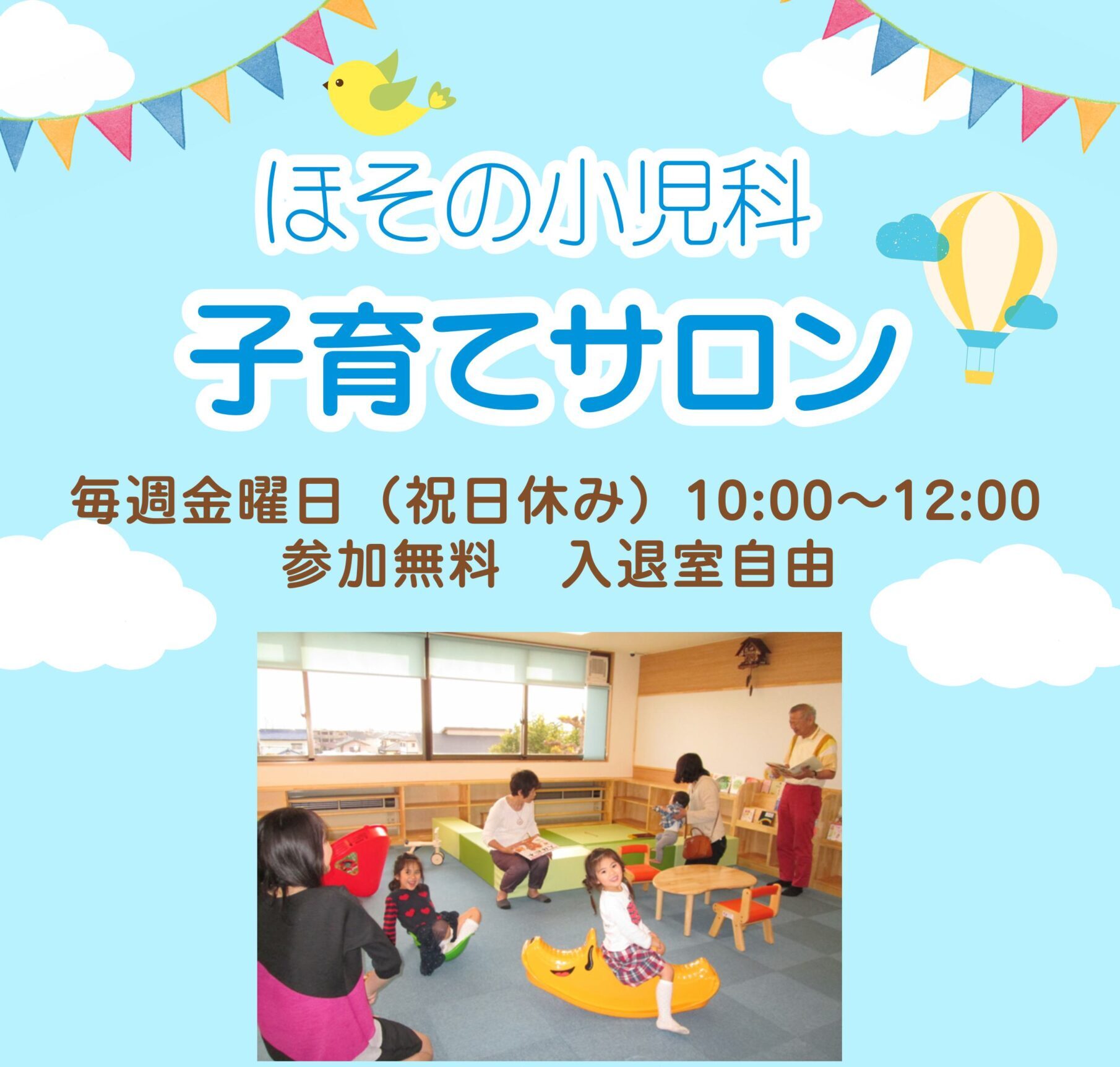イベント「ほその小児科」で、毎週金曜日『子育てサロン』がはじまるんだって!