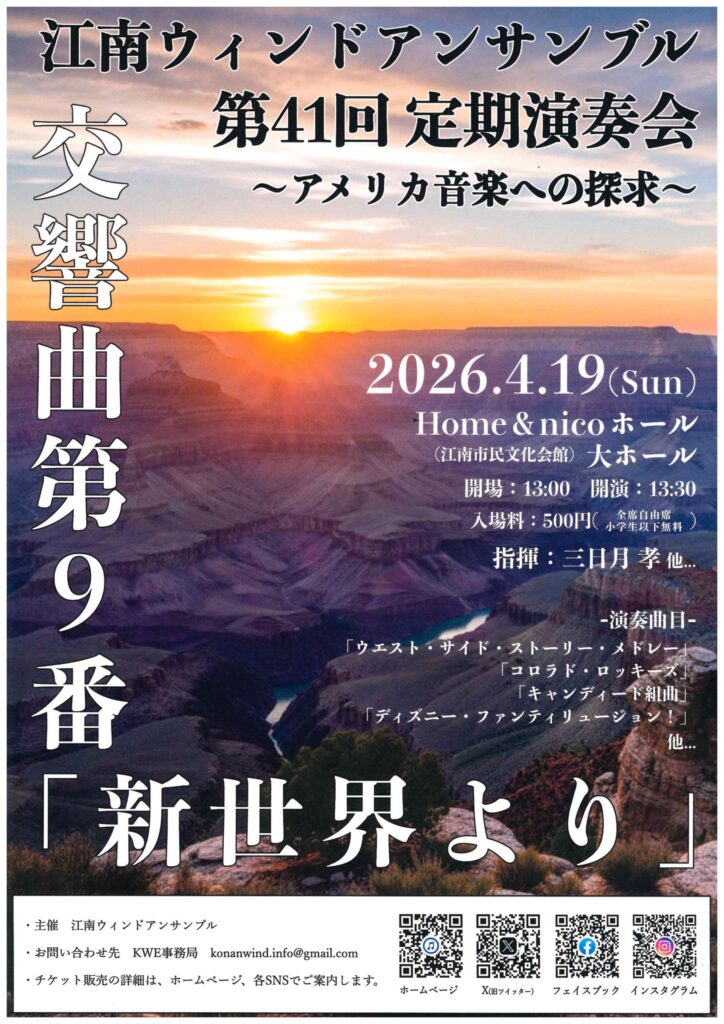 江南ウィンドアンサンブルの『第41回定期演奏会』が、