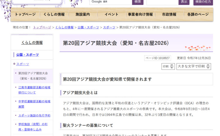 ニュース 【訂正】江南市は募集しないと伝えた「アジア大会・聖火リレー」!昨日12/26江南市ホームページで募集が開始されていました!メーテレの誤報?